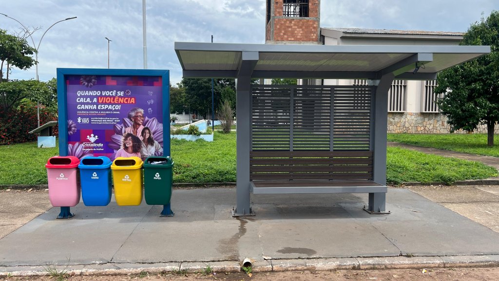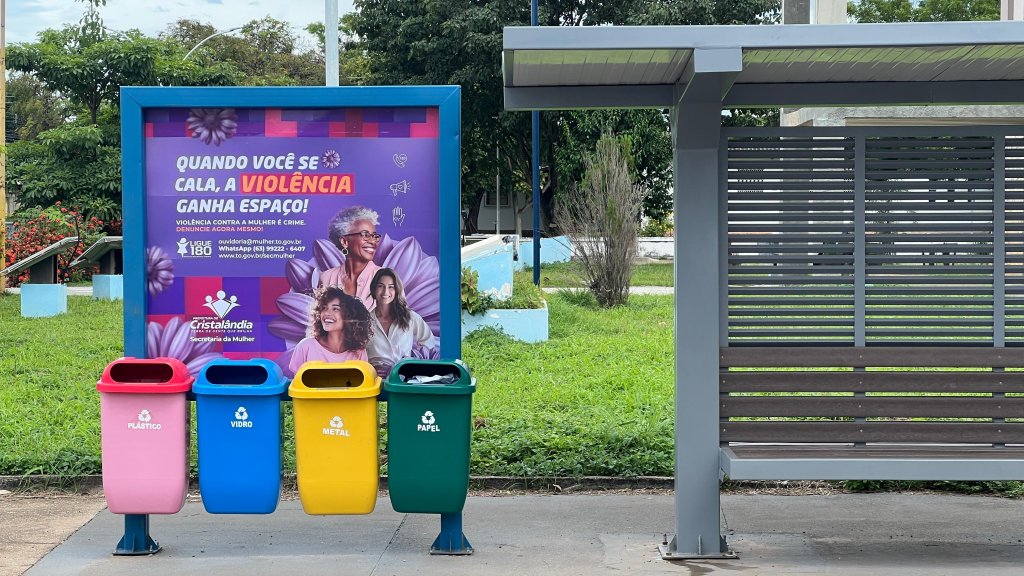 A Prefeitura de Cristalândia realizou a instalação de adesivos informativos nos pontos de ônibus da cidade com o objetivo de conscientizar a população sobre temas importantes para a sociedade. A iniciativa traz mensagens de combate à violência contra a mulher e de proteção à infância e adolescência, reforçando a importância da denúncia e do cuidado coletivo.