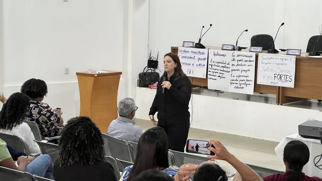 A palestra foi ministrada pela palestrante Carla de Paula Especialista em Desenvolvimento Humano, que abordou de forma clara e dinâmica temas essenciais para o dia a dia profissional, como trabalho em equipe, comunicação eficaz, resolução de conflitos, empatia e cooperação no ambiente institucional. Durante o evento, os participantes refletiram sobre atitudes, comportamentos e estratégias que orientaram para relações mais saudáveis ​​e produtivas no serviço público.